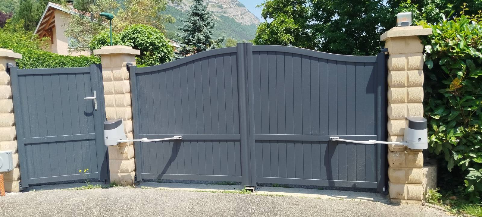 Imaginez la praticité d'un portail sur mesure qui allie esthétisme et sécurité. Récemment, nous avons accompagné un client de Saint-Paul-de-Varces, près de Grenoble, dans l'installation d'un ensemble complet. Leur choix s'est porté sur un portail aluminium 2 vantaux motorisé avec un portillon battant, répondant parfaitement à leurs attentes.